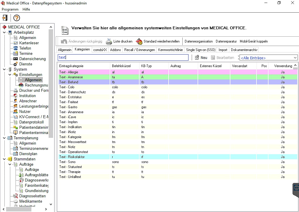 Von Medical Office vordefinierte, feste Kategorien (z.B. rf = Risikofaktoren) können über die GDT Schnittstelle nicht befüllt werden!